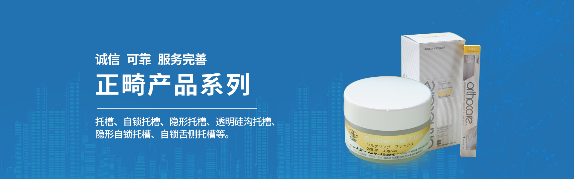 TOMY國(guó)際公司在中國(guó)銷售的(de)産品是(shì)以東(dōng)方人(rén)的(de)特點生(shēng♠)産制(zhì)作(zuò)的(de)高(gāo)品質、高(gāo)技(jì)術(shù)含量的(de)OPA-K直絲弓矯正系列。它包括托槽、自(zì)鎖托槽、隐形托槽、透明(míng)矽溝托槽、隐 形自(zì)鎖托槽、自(zì)鎖舌側托槽、頰面管、帶環及各種正畸用(yòng)弓絲(包括具有(yǒu)特色的(de)LH超彈性低(dī)滞後钛鎳合金(jīn)弓絲和(hé)低(dī)摩擦隐形弓絲)≠、橡皮圈等。本公司銷售的(de)NiTi絲彎制(zhì)鉗系列于2018年(nián)5月(yuè)獲得(de)實∏用(yòng)新型專利證書(shū),現(xiàn)授權日(rì)本鹽田公司加工(gōng)生(shēng)産。經營的(de)産品還(hái)包β括點焊機(jī)、弓絲成型儀,正畸教學模拟合架及排牙牙合架等一(yī)系列專業(yè)正畸設備。形成了(le)較為(wèi)完整的(de)正畸産品系列體™(tǐ)系。