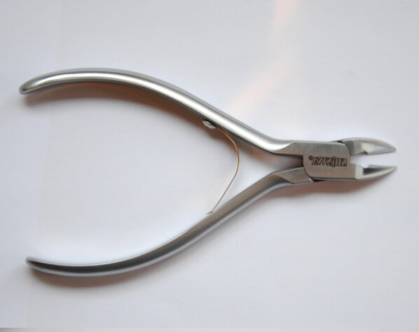 接紮絲切斷鉗(804-2009N):主要(yào)用(yòng)于切斷直徑不(bù)超過0.015英寸(0.38mm)的(de)結紮絲。鉗柄設計(jì)有(yǒu)彈簧片(專利号200420084 8188)可(kě)使操作(zuò)更加方便。